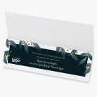Val op tijdens het wensseizoen met deze attentie die zowel smakelijk als elegant is. Personaliseer de chocoladeverpakkingen met het logo van je bedrijf, je contactgegevens en postadres, evenals de url van je website. Er is bovendien ruimte gereserveerd op de verpakking voor het formuleren van je zakelijke kerstwensen